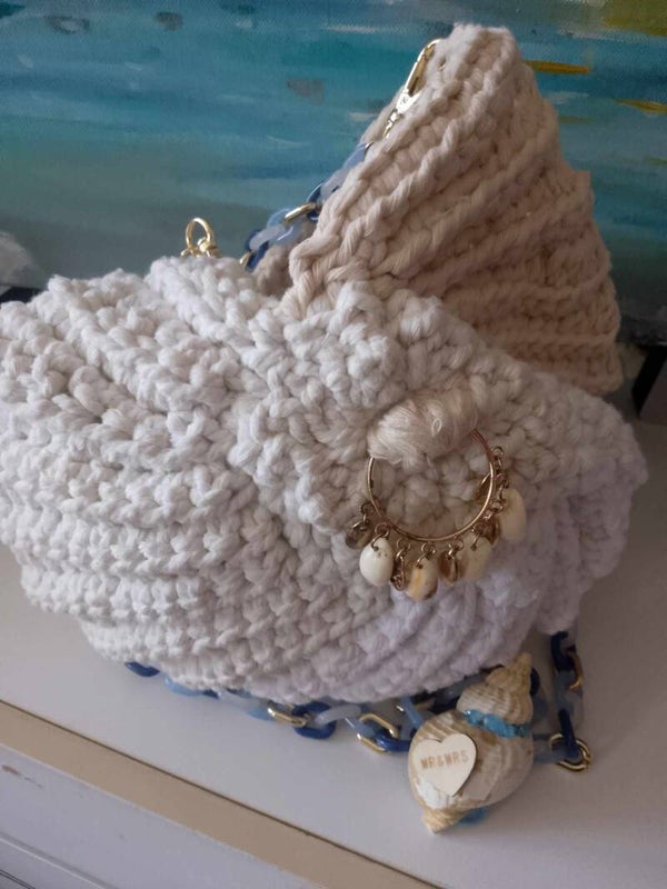 Découvrez ce sac été femme élégant, fabriqué à la main au crochet avec un fil macramé :
